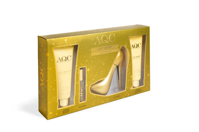 Eleva tu elegancia con el Set de Regalo Lady Secret Gold Edition. Descubre la lujosa fragancia en formato 100ml y su versión de 15ml para llevar contigo. Complementa tu ritual de belleza con un gel de ducha y una loción hidratante, todos con irresistibles notas florales y afrutadas.