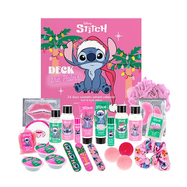 Cuenta atrás para Stitchmas con estilo con nuestro mágico calendario de adviento inspirado en Stitch de Disney, que incluye 24 deliciosos caprichos para el baño, el cuerpo y la belleza.
