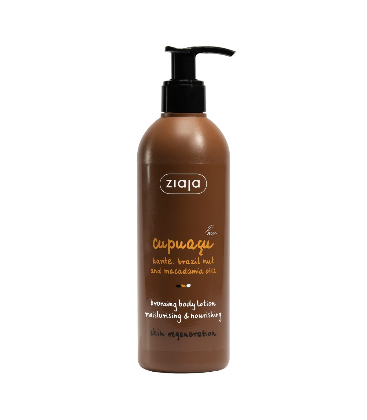 Loción corporal autobronceadora con propiedades hidratantes y nutritivas que regenera la piel mientras proporciona un bronceado gradual y uniforme sin necesidad de exposición solar.